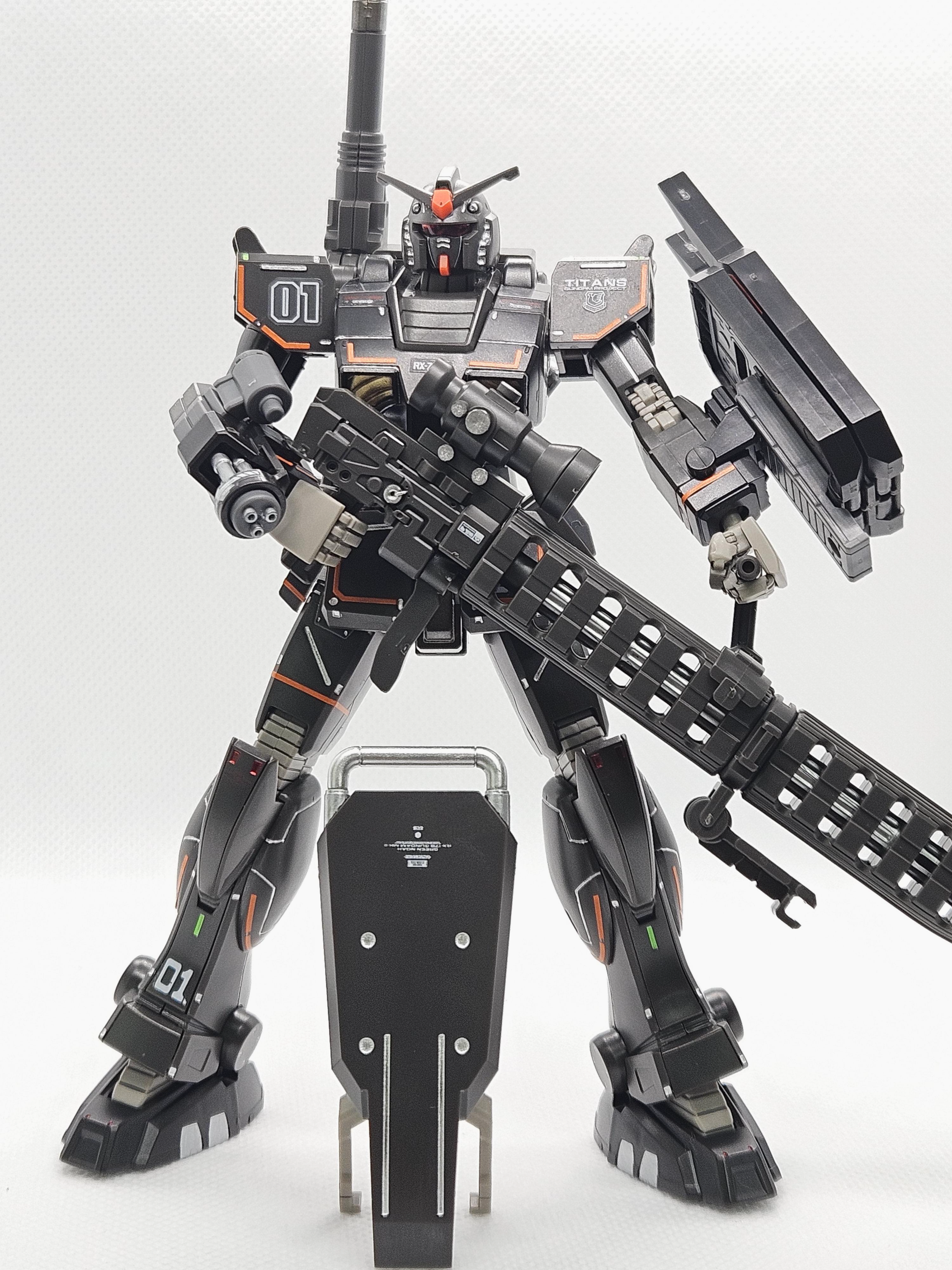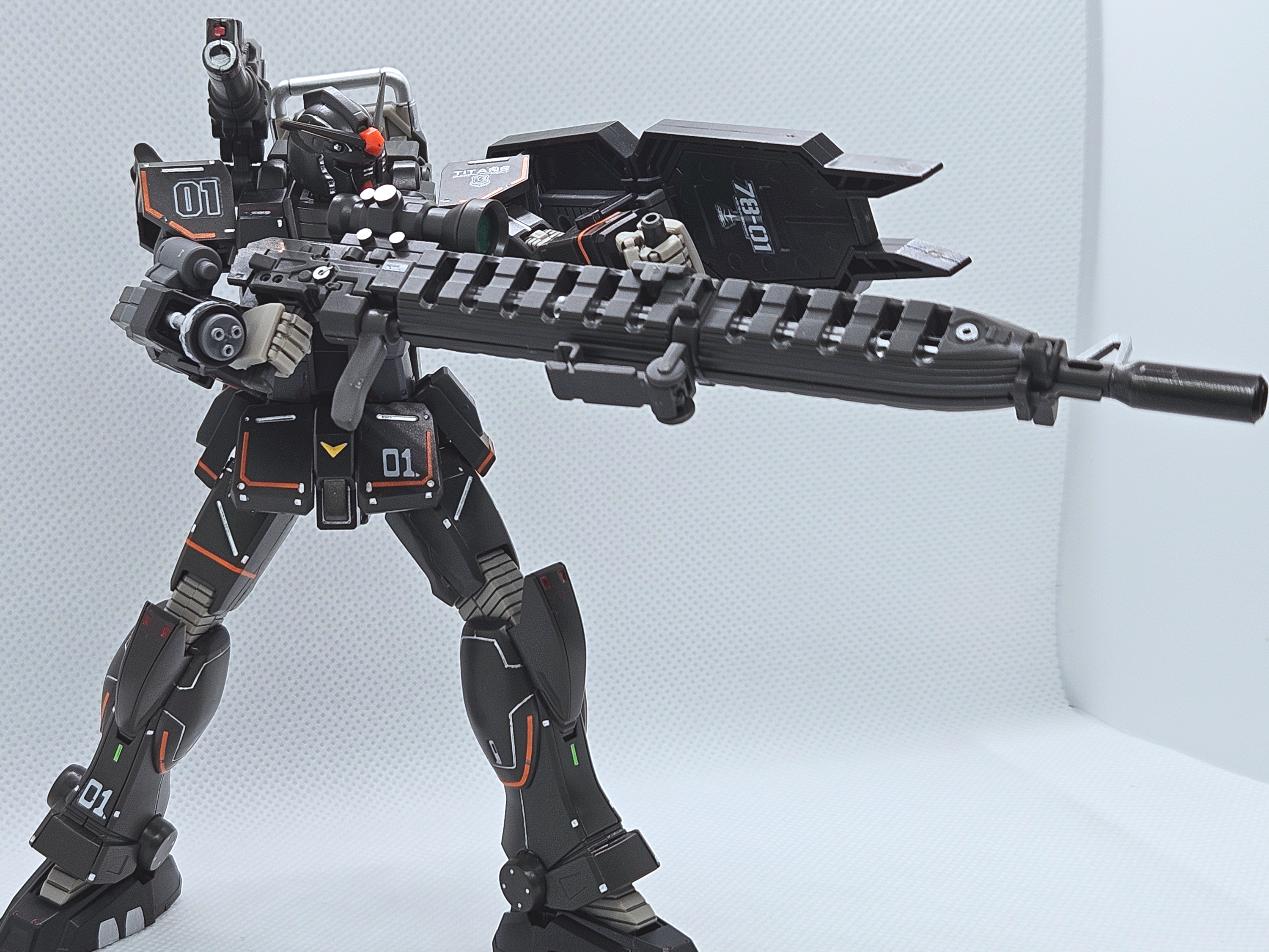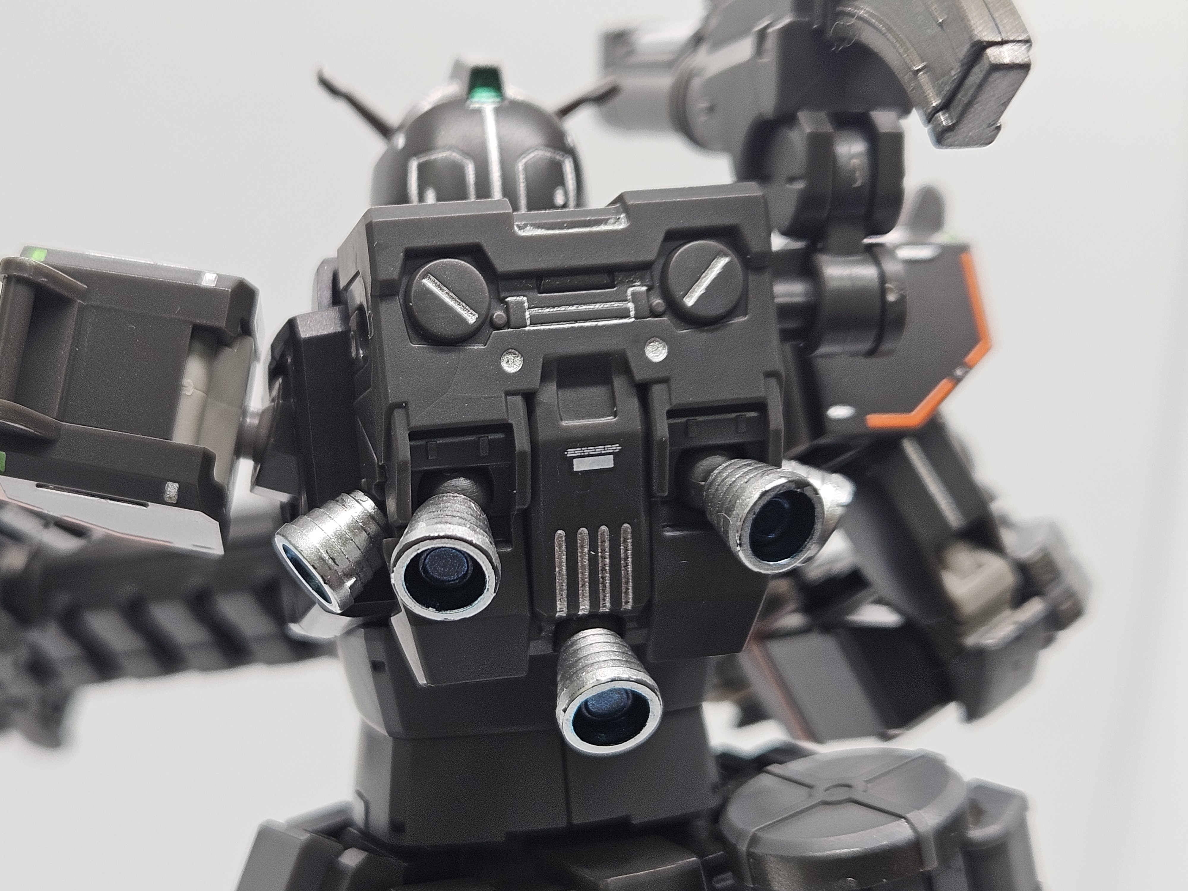 빵댕이랑 허벅지에 은색 먹선이 잘 표현되서 좋다. 검은색 기체는 메탈계열 먹선이 아주 잘 어울린다.