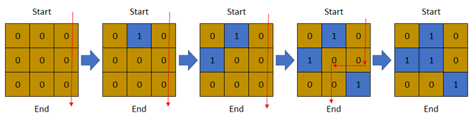 Explanation: The above image depicts how the matrix changes each day starting from day 0.