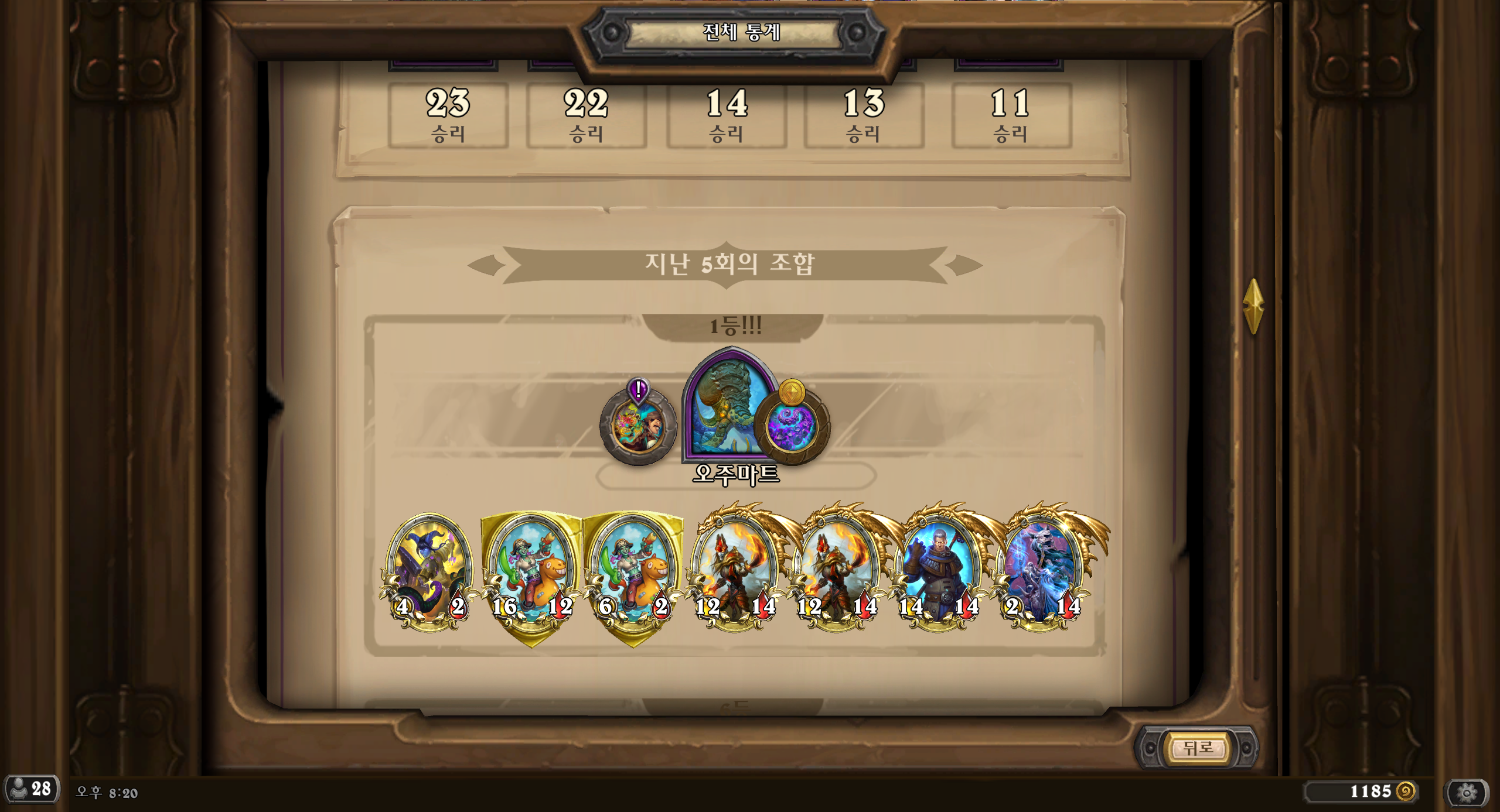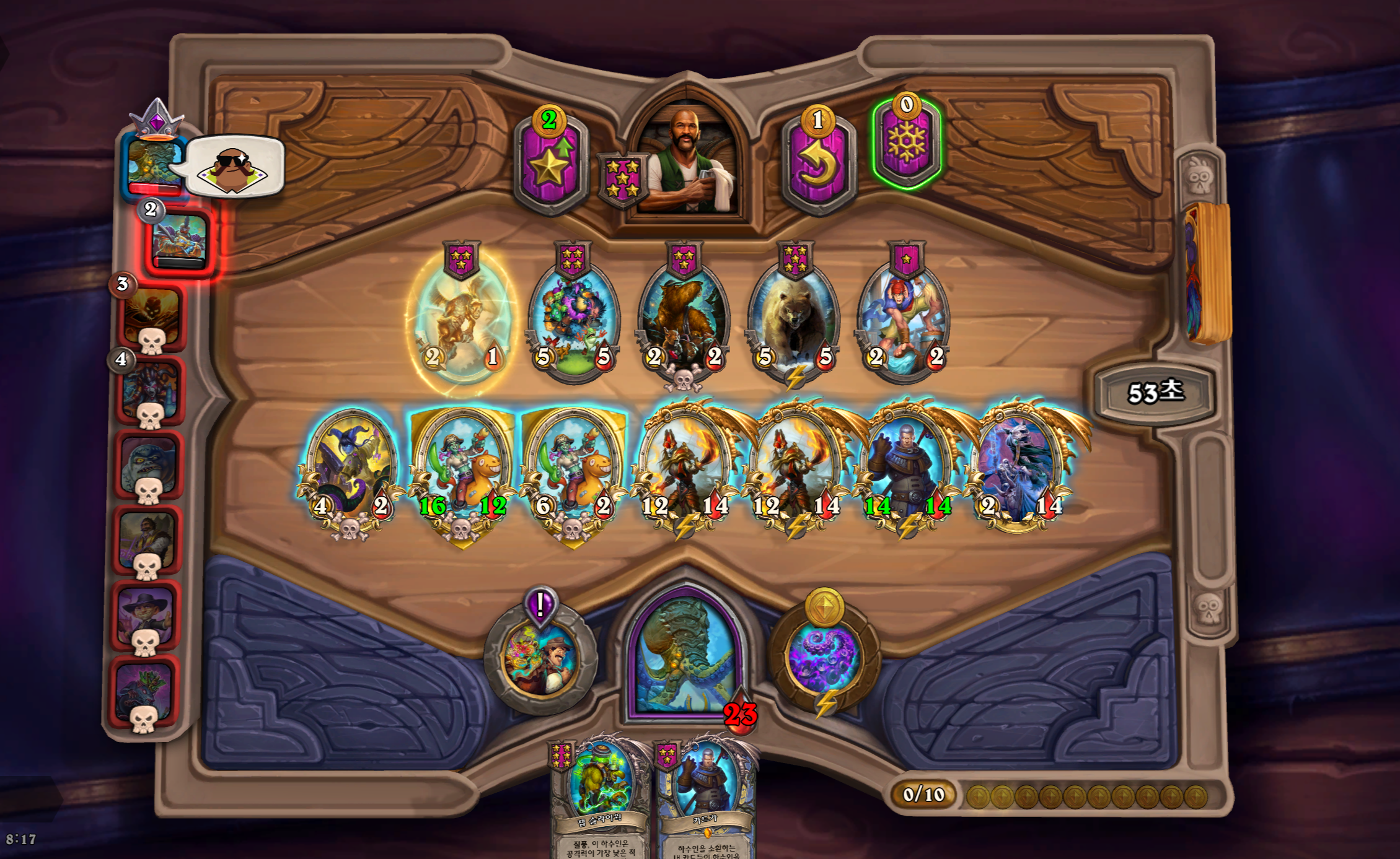 가끔 머리아플때 쉬고 싶을때 하는 게임 중 하나로 하스스톤 전장이 있다.