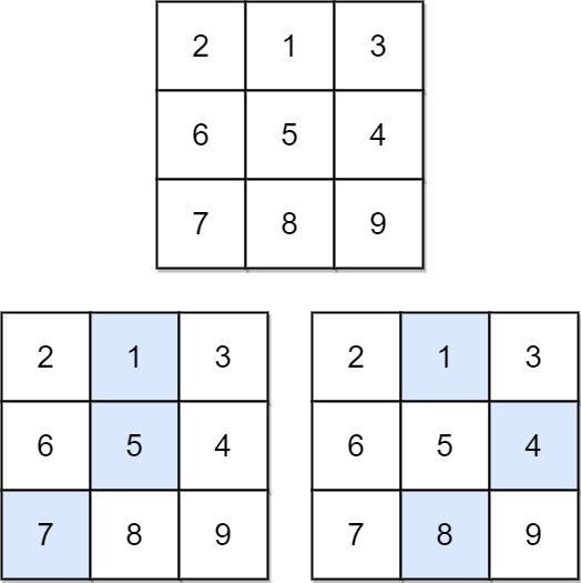 Input: matrix = [[2,1,3],[6,5,4],[7,8,9]]